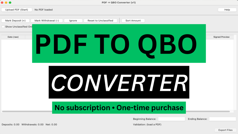 Convert bank statement PDFs into QuickBooks (QBO) files — no subscription.